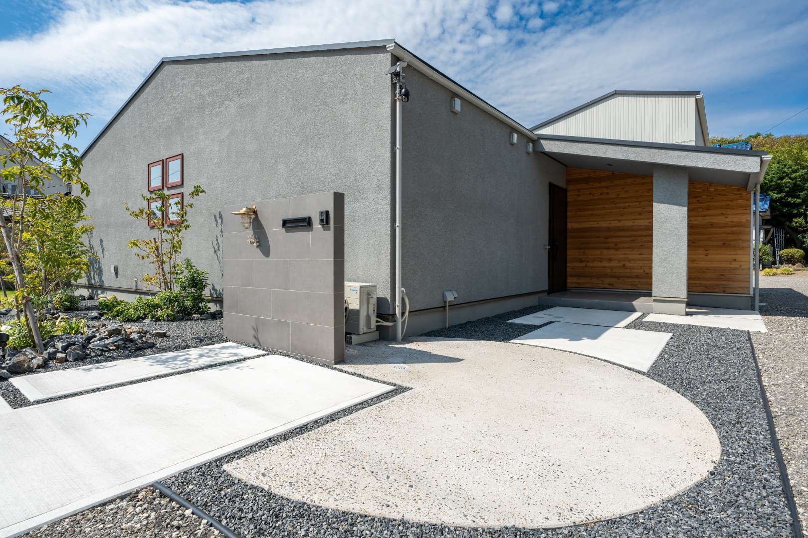 コンクリートや建物だけだと、どうしても無機質な印象になりがちですが、植栽を取り入れることで一気に柔らかい雰囲気になります。